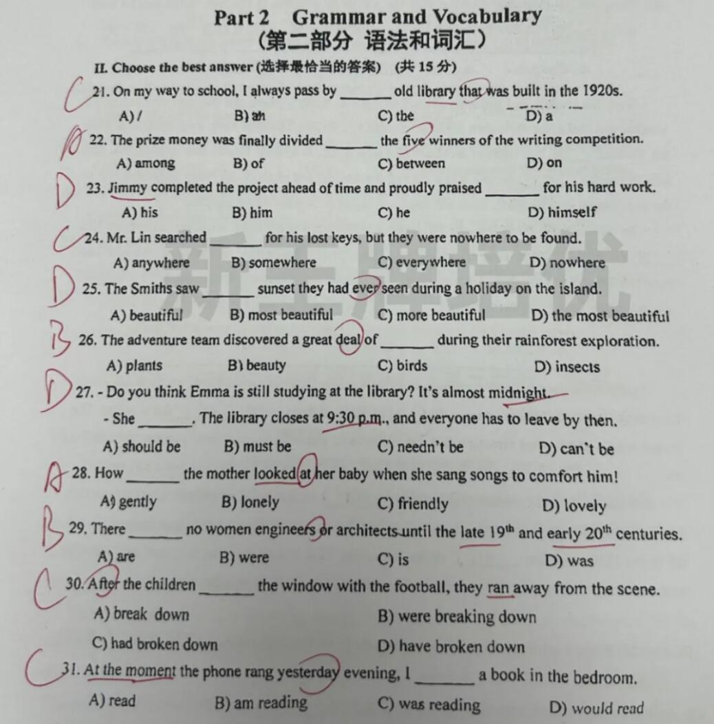 嘉定区初三二模答案来了!附94套15区二模真题卷