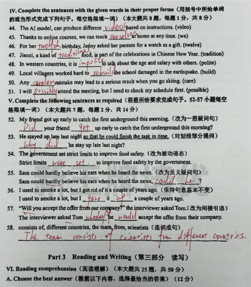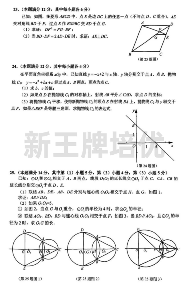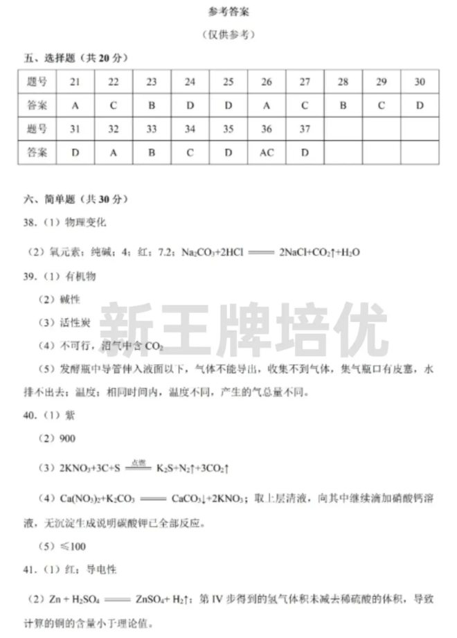 答案来了!浦东/黄浦初三二模试卷及答案均有更新!